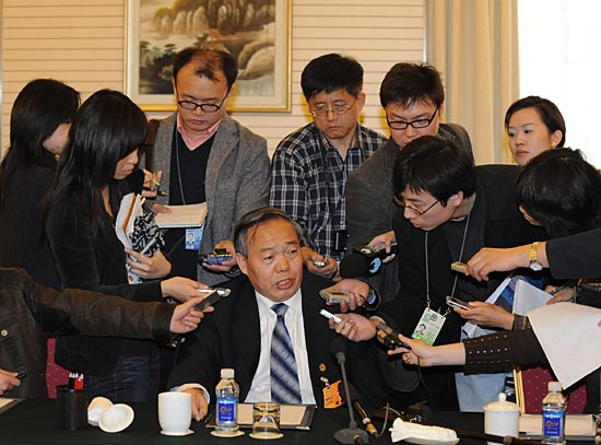 3月9日,政協(xié)中共界小組討論對媒體開放。這是鄭新立委員在回答記者提問。