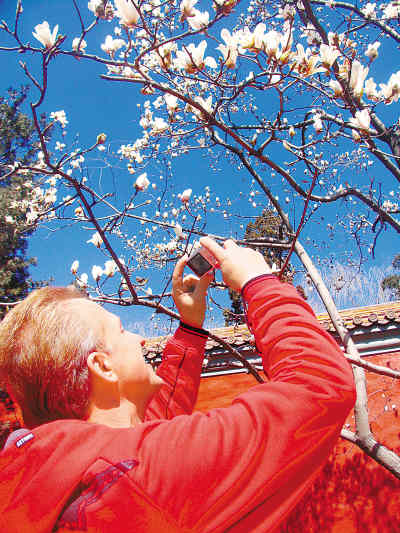 湛藍(lán)的天空,盛開的白玉蘭,給兩會(huì)增添了喜慶氣氛。