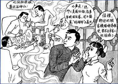 隨著人們對(duì)健康意識(shí)的普遍增強(qiáng),對(duì)餐廳“禁煙”的要求也愈加強(qiáng)烈,2008年國家提出了“無煙奧運(yùn)”的概念,規(guī)定相關(guān)的餐廳等場所要“禁煙”。但是一些餐廳首先考慮的是利潤,擔(dān)心餐廳控?zé)煏?huì)影響營業(yè)額,也有些食客固守吃飯抽煙的習(xí)慣不想改掉,使“無煙餐廳”至今尚未全面“開花結(jié)果”?磥,“餐廳等場所禁煙”,除了有關(guān)部門檢查監(jiān)督外,某些煙民也應(yīng)轉(zhuǎn)變老習(xí)慣,養(yǎng)成文明行為才行。