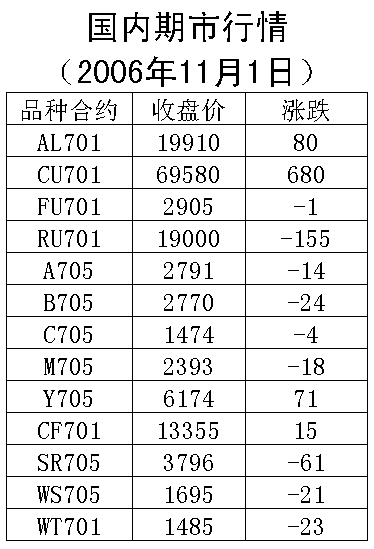 1日,國內(nèi)期貨市場(chǎng)滬銅鋁、白糖上漲,其他品種則以下跌報(bào)收。