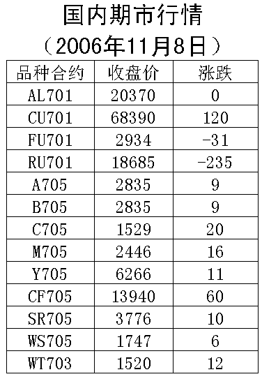 滬銅呈現(xiàn)震蕩走勢。受LME等國際金屬市場期銅周二價(jià)格繼續(xù)回升的影響,滬銅在稍稍低開后很快企穩(wěn)并開始回升,但午后略有回落。收盤漲跌互現(xiàn),小升或微跌。滬銅701合約8日上漲120元/噸,收盤68390元/噸。