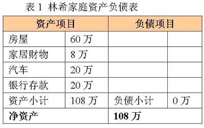 林希今年32歲,2000年碩士畢業(yè),現(xiàn)在一家外企任高級經(jīng)理,年薪20萬元,年終獎五萬元。林太太今年30歲,醫(yī)學(xué)本科畢業(yè),現(xiàn)經(jīng)營一家小型美容院,生意雖不大,但擁有一批忠實的客戶,年收入15萬元。2003年,林希夫婦按揭購置了一套97平方米的房子,去年已繳清所有房貸,該房產(chǎn)現(xiàn)市值60萬元。今年年初,又買了一輛20萬元的車,尚余20萬元銀行存款。