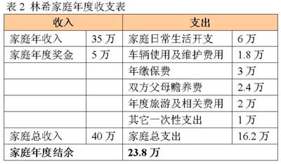 林希夫婦的收入屬于中上等,且林希正處在事業(yè)的上升期,收入有望繼續(xù)增長,但林太太由于是自己經(jīng)營,如果未來一年生育小孩,生意將受影響,導(dǎo)致收入下降。支出方面,目前的家庭日常生活開支較高,應(yīng)適當(dāng)節(jié)制,因為從懷孕開始,家庭支出將會明顯增加,應(yīng)確保每年能有足夠的結(jié)余資金,以便通過投資滿足未來的資金需求。
