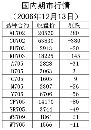 13日,國內(nèi)期貨市場除鋁外各品種價格均出現(xiàn)下跌。