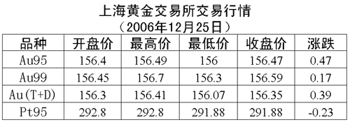 25日,上海黃金交易所新增加的一個黃金交易品種Au100g正式掛牌,但交易不太活躍。金交所定的初始價為160元/克,開盤價為157元/克,最高價為157元/克,最低價為157元/克,收盤價為157元/克,下跌3元/克,共成交0.40公斤,成交金額為62800元。