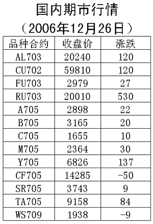 由于圣誕節(jié)影響外盤25日休市。滬銅705合約26日上漲120元/噸,收盤59810元/噸。由于銅價跌勢沒有結束,不建議抓反彈,滬鋁703合約26日上漲120元/噸,收盤20240元/噸。鋁價仍在上升通道當中,建議逢低買進。