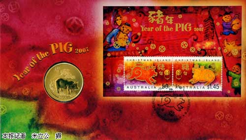 澳大利亞近日發(fā)行中國農歷豬年紀念郵票和系列郵品,這是澳大利亞連續(xù)第12年發(fā)行中國生肖紀念郵票。