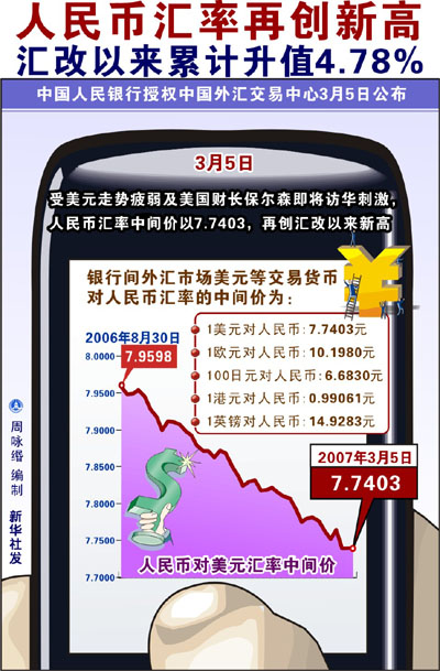 人民幣匯率創(chuàng)新高 匯改以來累計升值4.78%