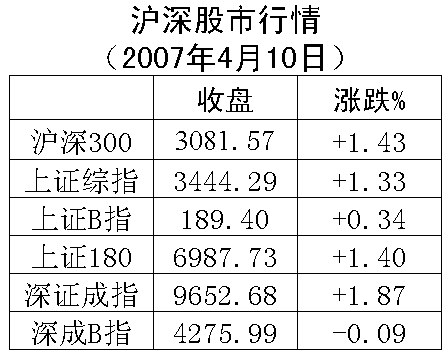 在上市公司業(yè)績和市場充裕資金的支持下,滬深股指10日再度雙雙創(chuàng)出新高。上證綜指站上3400點整數(shù)關(guān)口,與此同時兩市創(chuàng)出超過2300億元的新“天量”。