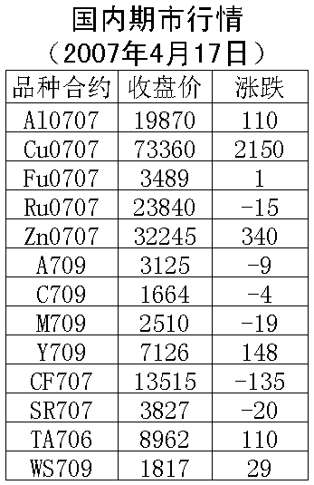 17日,國內(nèi)期貨市場強(qiáng)麥上漲,其余各品種均下跌。倫敦銅市場周一上漲37.5美元/噸,收盤7770美元/噸。滬銅707合約周二下跌740元/噸,收盤72380元/噸,支撐價(jià)位72000元一線,上漲壓力75000元一線。倫敦鋁周一上漲18美元/噸,收盤2832.5美元/噸。滬鋁707合約周二下跌40元/噸,收盤19840元/噸,支撐價(jià)位19500元一線,上漲壓力20400元一線。