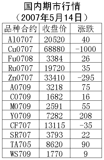 14日國(guó)內(nèi)期貨市場(chǎng)金屬價(jià)格呈銅跌鋁漲,能源、農(nóng)產(chǎn)品價(jià)格上漲。倫敦銅上周五上漲65美元/噸,收盤(pán)7895美元/噸。滬銅707合約周一下跌10000元/噸,收盤(pán)68880元/噸,支撐價(jià)位68000元一線,上漲壓力70000元一線。倫敦鋁上周五上漲50美元/噸,收盤(pán)2877.5美元/噸。滬鋁707合約周一上漲40元/噸,收盤(pán)20520元/噸,支撐價(jià)位20000元一線,上漲壓力21000元一線。