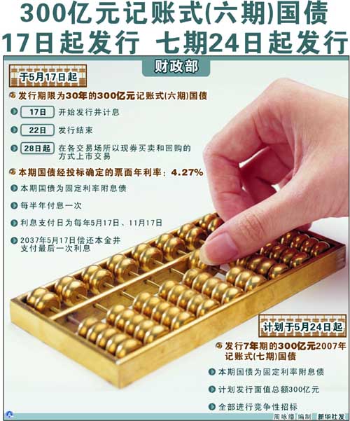 300億元記賬式(六期)國債17日起發(fā)行[圖表]