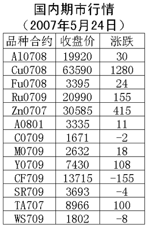 24日,國(guó)內(nèi)期貨市場(chǎng)金屬,能源價(jià)格上漲,農(nóng)產(chǎn)品價(jià)格下跌。