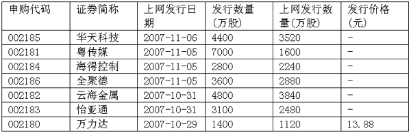 本周將有三個(gè)新股發(fā)行,他們?nèi)歼x擇在中小板上市。 萬利達(dá)于10月29日網(wǎng)上申購(gòu)。該公司擬發(fā)行1400萬股,主營(yíng)業(yè)務(wù)是繼電保護(hù)和電力綜合自動(dòng)化研發(fā)、生產(chǎn)、銷售。公司的毛利率較高,超過50%,但是市場(chǎng)占有率與優(yōu)勢(shì)企業(yè)相比有一定差距。 云海金屬于10月31日網(wǎng)上申購(gòu)。該公司擬發(fā)行4800萬股,主營(yíng)業(yè)務(wù)是鎂合金的,同時(shí)生產(chǎn)鍶和鋁合金。該公司是鎂合金產(chǎn)銷量的龍頭,同時(shí)也是全球規(guī)模最大的鎂合金專業(yè)生產(chǎn)企業(yè)。我國(guó)的鎂儲(chǔ)量豐富,排名世界第一,而且成本較低,所以現(xiàn)在全球的鎂合金制造基地向中國(guó)轉(zhuǎn)移。公司總體質(zhì)地不錯(cuò),成長(zhǎng)迅速,問題是產(chǎn)品價(jià)格較低,容易造成反傾銷訴訟,同時(shí)產(chǎn)品毛利也不高。 怡亞通將于10月31日網(wǎng)上申購(gòu)。該公司擬發(fā)行3100萬股。這是一家管理創(chuàng)新的公司,主要從事的是將生產(chǎn)企業(yè)除生產(chǎn)以外的供應(yīng)量統(tǒng)統(tǒng)包下來的業(yè)務(wù),所謂生產(chǎn)歸廠商,供銷歸這家公司,這種模式在國(guó)內(nèi)剛剛興起,它的年均復(fù)合增長(zhǎng)率為40%,毛利率超過60%。 本周,證監(jiān)會(huì)還將審核兩家公司的首發(fā)申請(qǐng)和兩家公司的增發(fā)申請(qǐng)。10月31日,發(fā)審委將召開第157次發(fā)審會(huì),審核云南綠大地生物科技股份有限公司和浙江東晶電子股份有限公司的首發(fā)申請(qǐng)。據(jù)預(yù)先披露的首發(fā)招股說明書(申報(bào)稿)顯示,綠大地生物本次將發(fā)行2100萬股,占發(fā)行后總股本的25.02%。本次發(fā)行募集資金將主要用于特色綠化苗木生產(chǎn)基地建設(shè)等項(xiàng)目。東晶電子本次將發(fā)行1600萬股,占發(fā)行后總股本的25.81%。本次發(fā)行募集資金將主要用于新型高精度SMD石英晶體元器件技改等項(xiàng)目。當(dāng)日,發(fā)審委還將召開第158次發(fā)審會(huì),審核金融街控股股份有限公司和浙江棟梁新材料股份有限公司的增發(fā)申請(qǐng)。 上周,“亞洲最盈利企業(yè)”中國(guó)石油回歸A股。上周五是中石油網(wǎng)上申購(gòu)日,同時(shí)也是網(wǎng)下申購(gòu)的截止日。據(jù)悉,中石油網(wǎng)上、網(wǎng)下凍結(jié)資金均創(chuàng)下新高,不僅刷新了中國(guó)神華剛剛締造的紀(jì)錄,且成就了中國(guó)股市新股發(fā)行史上的凍結(jié)資金最大單。有關(guān)渠道的數(shù)據(jù)顯示,中國(guó)石油此次網(wǎng)上、網(wǎng)下凍結(jié)資金總計(jì)約3.3萬億,一舉超過中國(guó)神華2.67萬億的凍結(jié)資金量,創(chuàng)下中國(guó)股市IPO凍結(jié)資金的新高。
