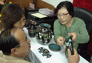 | 作為文物資源大國,我國并不缺乏文物鑒定專業(yè)隊(duì)伍,“十一”黃金周期間,故宮博物院副研究員劉靜(右一)在為收藏者鑒定一套瓷器。新華社記者