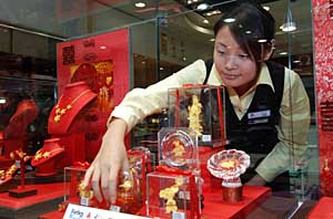 | 國際金價上漲未影響黃金各種題材收藏品的熱賣。新華社記者 魏培全