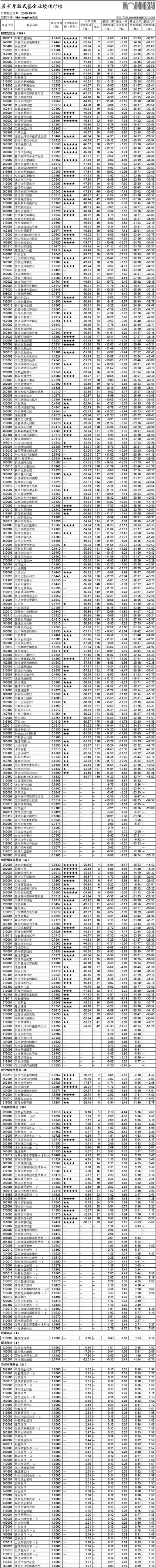 晨星開(kāi)放式基金業(yè)績(jī)排行榜[2008-10-13]