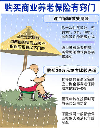 近期以來(lái),隨著事業(yè)單位養(yǎng)老金改革試點(diǎn)的啟動(dòng),退休養(yǎng)老問(wèn)題再次成為一個(gè)人們熱議的話(huà)題。由于國(guó)內(nèi)老齡化程度的日益提高和退休金替代率(即占退休前工資比例)的逐年下降,傳統(tǒng)的社保退休金已遠(yuǎn)遠(yuǎn)不能滿(mǎn)足人們退休以后的生活需求,越來(lái)越多的老百姓通過(guò)購(gòu)買(mǎi)商業(yè)養(yǎng)老保險(xiǎn)來(lái)保障他們的老年生活。專(zhuān)家就此提醒人們,商業(yè)保險(xiǎn)越早買(mǎi)越好;在當(dāng)前經(jīng)濟(jì)困難時(shí)期,消費(fèi)者可以通過(guò)適當(dāng)縮短繳費(fèi)期限來(lái)減少保費(fèi)支出。