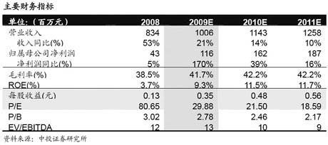 元,按照轉(zhuǎn)增后總股本(10轉(zhuǎn)增3)攤薄每股收益0.05元。對(duì)比公司2008和2009年的1季度財(cái)報(bào),差異較大的會(huì)計(jì)科目在于三費(fèi),2009年1季度公司銷售費(fèi)用和管理費(fèi)用同比分別增長(zhǎng)484.06%和87.02%,達(dá)到1789萬(wàn)元和2520萬(wàn)元。財(cái)務(wù)費(fèi)用同比增長(zhǎng)157.33%達(dá)到1140萬(wàn)元。該三項(xiàng)費(fèi)用合計(jì)同比增加3352萬(wàn)元,使凈利潤(rùn)同比減少約3000萬(wàn)元,造成2009年1季度公司收入穩(wěn)步增長(zhǎng)而凈利潤(rùn)同比大幅下降。 值得肯定的一點(diǎn)是,2009年一季度凈利潤(rùn)基本上都是由主營(yíng)業(yè)務(wù)貢獻(xiàn),在不發(fā)生2008年4季度大規(guī)模非經(jīng)常性損失的前提下,有線網(wǎng)絡(luò)業(yè)務(wù)的穩(wěn)定性特點(diǎn)是公司未來收入和盈利的保障。公司計(jì)劃2009年實(shí)現(xiàn)營(yíng)業(yè)收入9億元、凈利潤(rùn)7000萬(wàn)元,1季度已經(jīng)完成收入和凈利潤(rùn)指標(biāo)的24.69%和32.41%。 國(guó)泰君安研究所表示,如果以1季度業(yè)績(jī)?yōu)樗{(lán)本預(yù)測(cè),則公司全年業(yè)績(jī)很有可能超預(yù)算。但鑒于公司連續(xù)兩年低于預(yù)期的歷史,仍然維持2009-2011年全面攤薄每股收益分別為0.17元、0.21元、0.25元的盈利預(yù)測(cè)。對(duì)應(yīng)當(dāng)前股價(jià)的市盈率分別為53.6倍、44.2倍、36.3倍,對(duì)應(yīng)除權(quán)后股價(jià)對(duì)應(yīng)市盈率分別為41.3倍、34