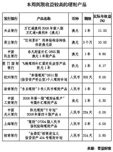 到期收益水平較高的理財(cái)產(chǎn)品中,除人民幣信貸資產(chǎn)類理財(cái)產(chǎn)品外,澳元理財(cái)產(chǎn)品表現(xiàn)搶眼,其中2款澳元結(jié)構(gòu)性理財(cái)產(chǎn)品表現(xiàn)優(yōu)異,到期取得較高的年收益率。另外,1款1年期投資于股權(quán)的人民幣理財(cái)產(chǎn)品到期也實(shí)現(xiàn)了7.8%的高年收益率。