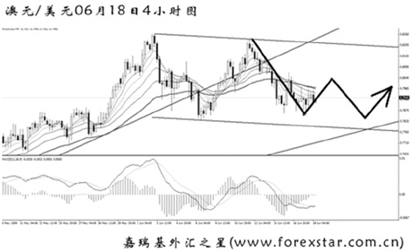 ▲澳元兌美元高位調整,目前支撐匯價的第一條趨勢線已被跌破,但還有第二條提供支持。預計漲勢不會很快結束,后市繼續(xù)以看多澳元為主,重點關注0.7780一線的支撐力度。
