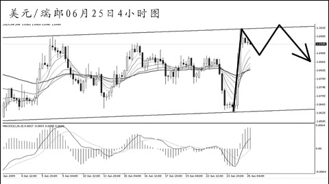 ▲美元兌瑞郎本周中段在美指的帶動下大幅上沖,但尚未有效升破震蕩區(qū)間。除非匯價發(fā)力突破1.1200一線,否則仍不能放心大膽地做多,預計調(diào)整后將再度上攻一次區(qū)間上沿阻力,隨即震蕩下挫。