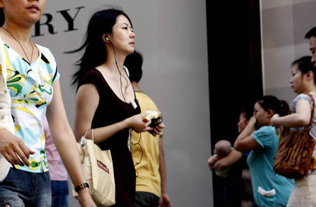 上海南京路上匆匆上班的人們(7月9日攝)。 回眸剛剛走過的2009年上半年,人們看到,受國際金融危機沖擊早、程度深的上海經(jīng)濟,如今正呈現(xiàn)逆勢上揚、穩(wěn)步回升的良好態(tài)勢:整體經(jīng)濟運行明顯好于年初預期,二季度各項經(jīng)濟指標明顯好于一季度;城鄉(xiāng)居民收入增幅、凈增就業(yè)崗位等更是出現(xiàn)了近年來少有的佳績。