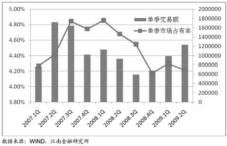 在經(jīng)歷了2008下半年市場的低迷后,公司的投行、資產(chǎn)管理業(yè)務尚沒有完全恢復,自營投資風格相對保守。