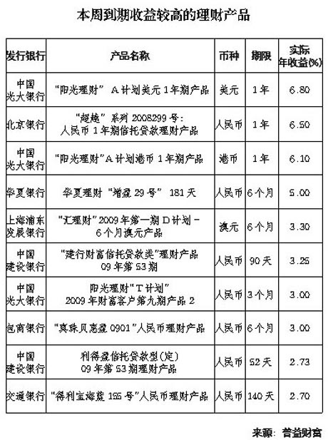 本周到期收益較高的理財產(chǎn)品[圖表]