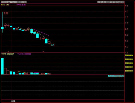 7月29日,中國(guó)建筑掛牌上市。由于其發(fā)行市盈率高達(dá)51.29倍,上市首日無(wú)人敢炒,當(dāng)日收盤漲幅只有56%。中國(guó)建筑上市當(dāng)天,大盤暴跌5%,如此的跌幅不僅近期罕見,更是1664點(diǎn)反彈啟動(dòng)以來(lái)的單日最大跌幅。在8月12日中國(guó)建筑計(jì)入指數(shù)這一天,其還帶領(lǐng)滬指向下破位30日生命線,市場(chǎng)的恐慌情緒再度彌漫。