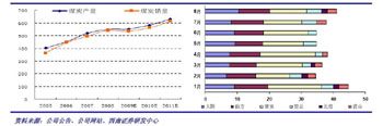 在蘭花科創(chuàng)長(zhǎng)期的產(chǎn)業(yè)布局中,除了無(wú)煙煤、化肥和煤炭行業(yè)的業(yè)績(jī)?cè)鲩L(zhǎng)也值得期待,資源整合所帶來(lái)的產(chǎn)能增長(zhǎng)同樣被看好。玉溪煤礦2008年10月31日獲得國(guó)家發(fā)改委核準(zhǔn),11月開(kāi)工建設(shè),預(yù)計(jì)項(xiàng)目建設(shè)期為3年,該礦設(shè)計(jì)能力240萬(wàn)噸/年,是公司煤炭產(chǎn)能的增長(zhǎng)點(diǎn)。公司自2008年8月份先后整合了山陰口前煤業(yè)、中立煤業(yè)、瑞興煤業(yè)等煤礦,其中山陰礦未來(lái)有建設(shè)成300萬(wàn)噸礦井的可能。參股的山西亞美大寧能源有限公司本已經(jīng)達(dá)產(chǎn)達(dá)效。