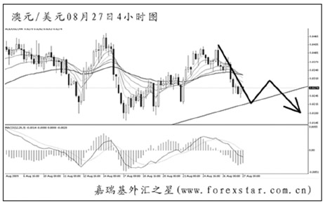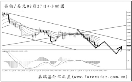▲美元兌瑞郎再度創(chuàng)出新低之后仍未能加速下行,日線圖下跌動能持續(xù)減弱。短線匯價波動凌亂,后市有向圖中的下降通道上沿發(fā)起沖擊的欲望。由于低位震蕩的時間已不短,形成階段性底部的可能性正在逐漸加大。