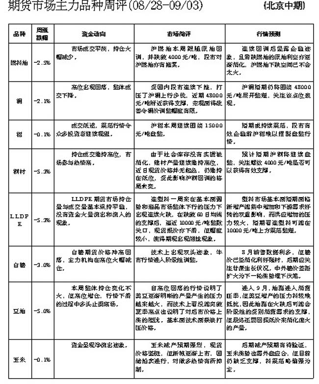 期貨市場主力品種周評[08.28—09.03]