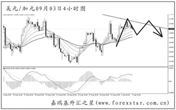 ▲美元兌加元正在挑戰(zhàn)日線圖下降趨勢線及均線系統(tǒng)的雙重壓制位1.1090一線。短線匯價的反彈力度不弱,但直接升破此阻力的希望不大。預(yù)計下周將以沖高回落的走勢為主。 |