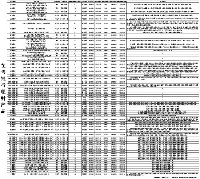 在售銀行理財(cái)產(chǎn)品[圖表]