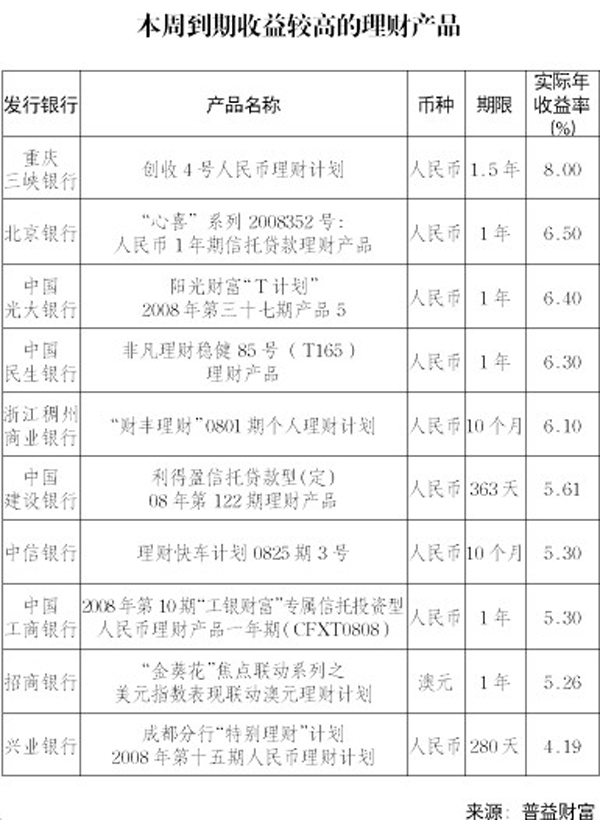 本周到期收回益較高的理財產(chǎn)品[圖表]
