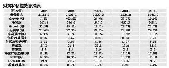 長江證券也給予公司較為樂觀的判斷,采用常規(guī)的PE估值,預(yù)計2009-2011年EPS分別為0.584、0.891和1.248元;鑒于公司為朝陽行業(yè)領(lǐng)頭羊,未來高成長比較明確,給予公司2009年30倍,2010年20-25倍PE。