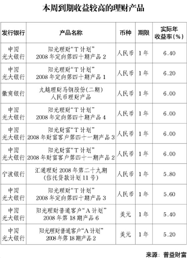 本周到期收益較高的理財(cái)產(chǎn)品[表]