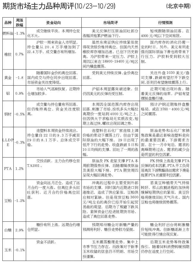期貨市場主力品種周評[10.23——10.29]