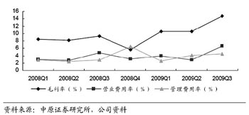 2009年3季報顯示,2009年1-9月,公司實現(xiàn)營業(yè)收入321.14億元,同比增長26.38%;歸屬于母公司所有者的凈利潤6.98億元,同比增長83.58%,EPS為0.76元。三季度,公司實現(xiàn)營業(yè)收入125.25億元,同比增長79.95%,環(huán)比上升4.78%;歸屬于母公司所有者的凈利潤2.45億元,同比增長546.04%,EPS為0.27元。