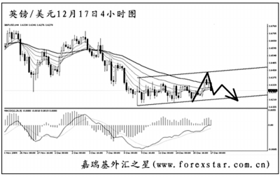 D的底背離信號(hào),但圖中的下降趨勢(shì)線(xiàn)起到了良好的壓制作用。后市等待歐元小幅回調(diào)后繼續(xù)做空的思路不變。
