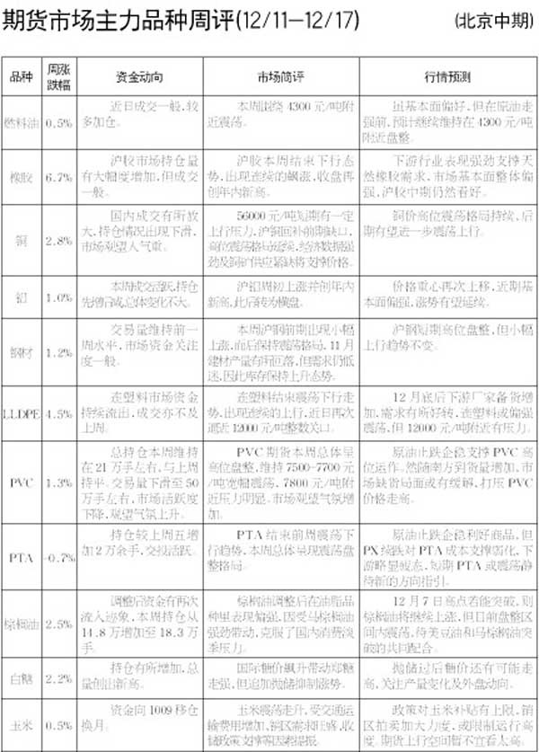 期貨市場主力品種周評[12.11-12.17]
