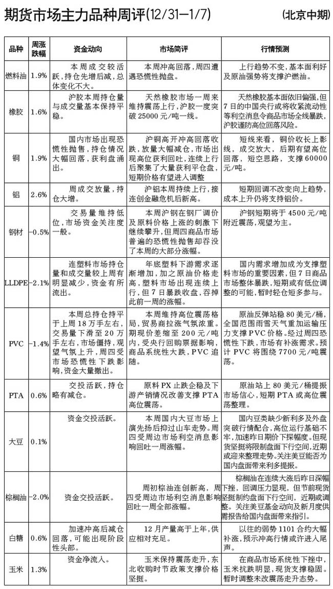 期貨市場(chǎng)主力品種周評(píng)[09.12-31-10.01.07]