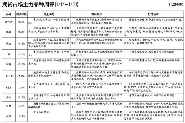 期貨市場(chǎng)主力品種周評(píng)[01.14-01.21]