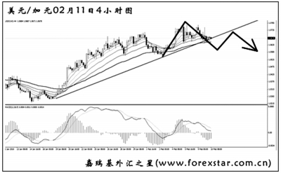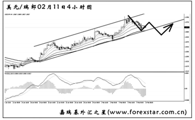 ▲美元兌瑞郎即將考驗通道下沿和均線系統(tǒng)的雙重支撐。從日線圖上看,仍有一定的上漲空間,但短線多頭動能減弱,匯價有進一步下調(diào)的風(fēng)險。預(yù)計跌破通道的希望較大,但下跌幅度將一般。在匯價回抽通道下沿時有一定的做空機會。