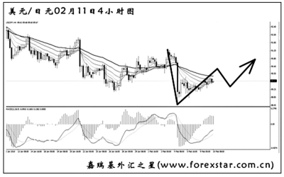 ▲澳元兌美元下跌至日線圖震蕩區(qū)間的下沿,從力度交替的角度考慮,是一個中線買入澳元的機會點。0.8570是止損的極限,匯價無論如何不能跌破此位,否則下跌空間將被打開,澳元還將有更深程度的下挫。短線可謹慎看漲澳元,但操作時的倉位要輕。