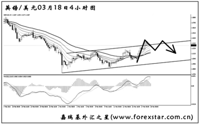 ▲英鎊兌美元已經(jīng)將近3周維持一個(gè)低位盤整的態(tài)勢(shì),沿通道上行調(diào)整。從日線圖上看,均線系統(tǒng)壓制排列,后市英鎊仍有再度下跌的欲望。短線匯價(jià)正在考驗(yàn)區(qū)間上沿的阻力,從道氏理論上看,只要英鎊不有效升破1.5575,都將再度挑戰(zhàn)前方低點(diǎn)。