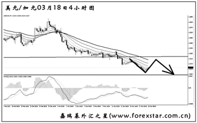 ▲美元兌加元終于將持續(xù)了半年的低位盤整區(qū)間跌破,下方的下一道支撐將看到0.9710,這是2008年2月的低點(diǎn)。從周線圖上看,旗型下跌中繼宣告成立,后市仍將以做空為主。短線匯價(jià)有回抽此前區(qū)間下沿的欲望,可等待新的下跌動(dòng)能出現(xiàn)后入場(chǎng)做空。 |