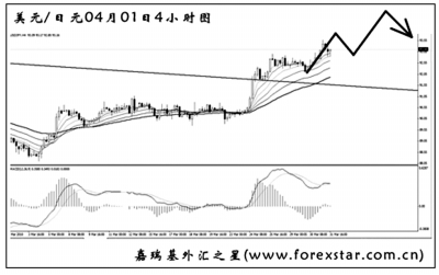 ▲美元兌日元將大級別下降趨勢線升破,且越過了周線圖的均線系統(tǒng)壓制位。短線匯價多頭動能充盈,即將考驗93.80的強(qiáng)阻,能否升破成為美元兌日元繼續(xù)上漲的關(guān)鍵。在突破此位置前,建議投資者暫時觀望,預(yù)計匯價繼續(xù)大幅上沖的概率不高。