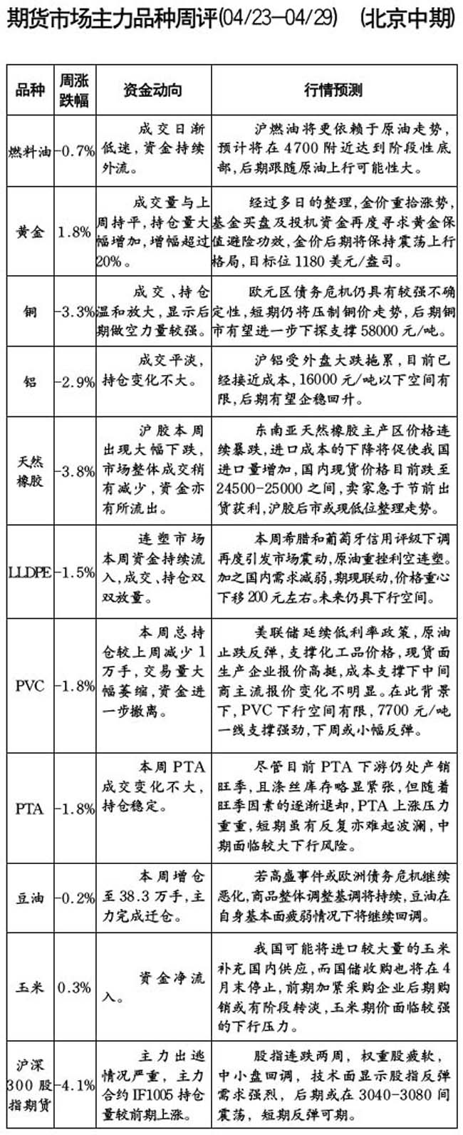 期貨市場(chǎng)主力品種周評(píng)[04.23-04.29]